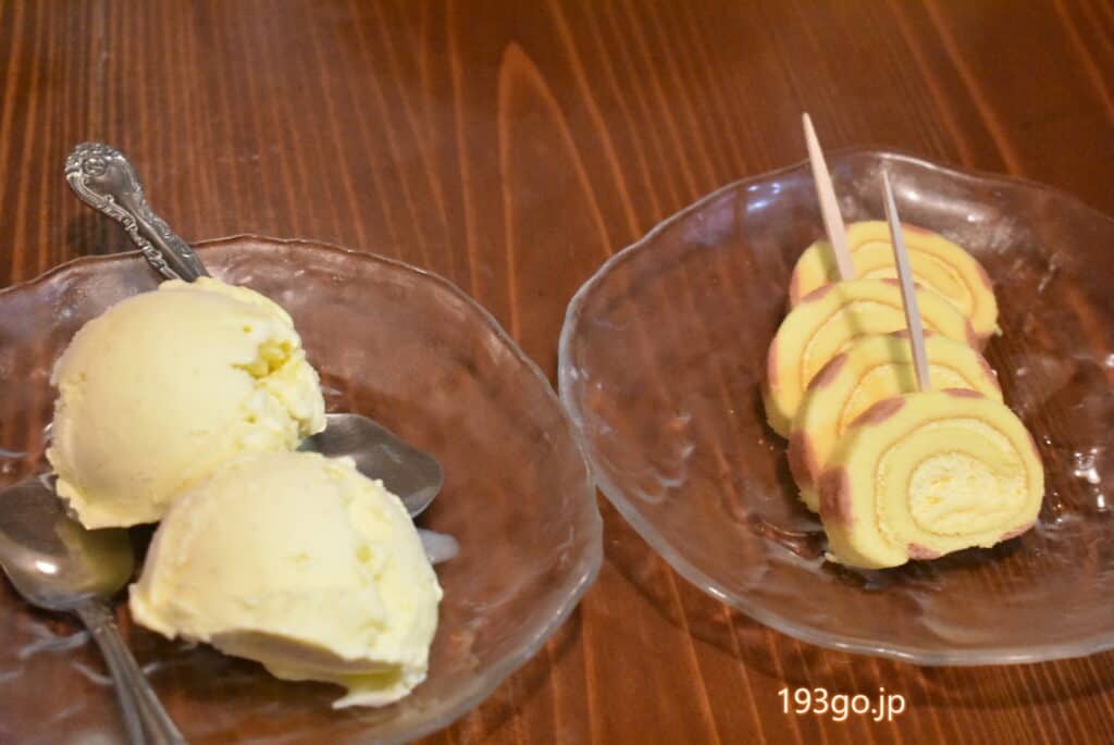 デザートは安納芋ロール。ミニサイズで可愛い!バニラアイスをのせて♪