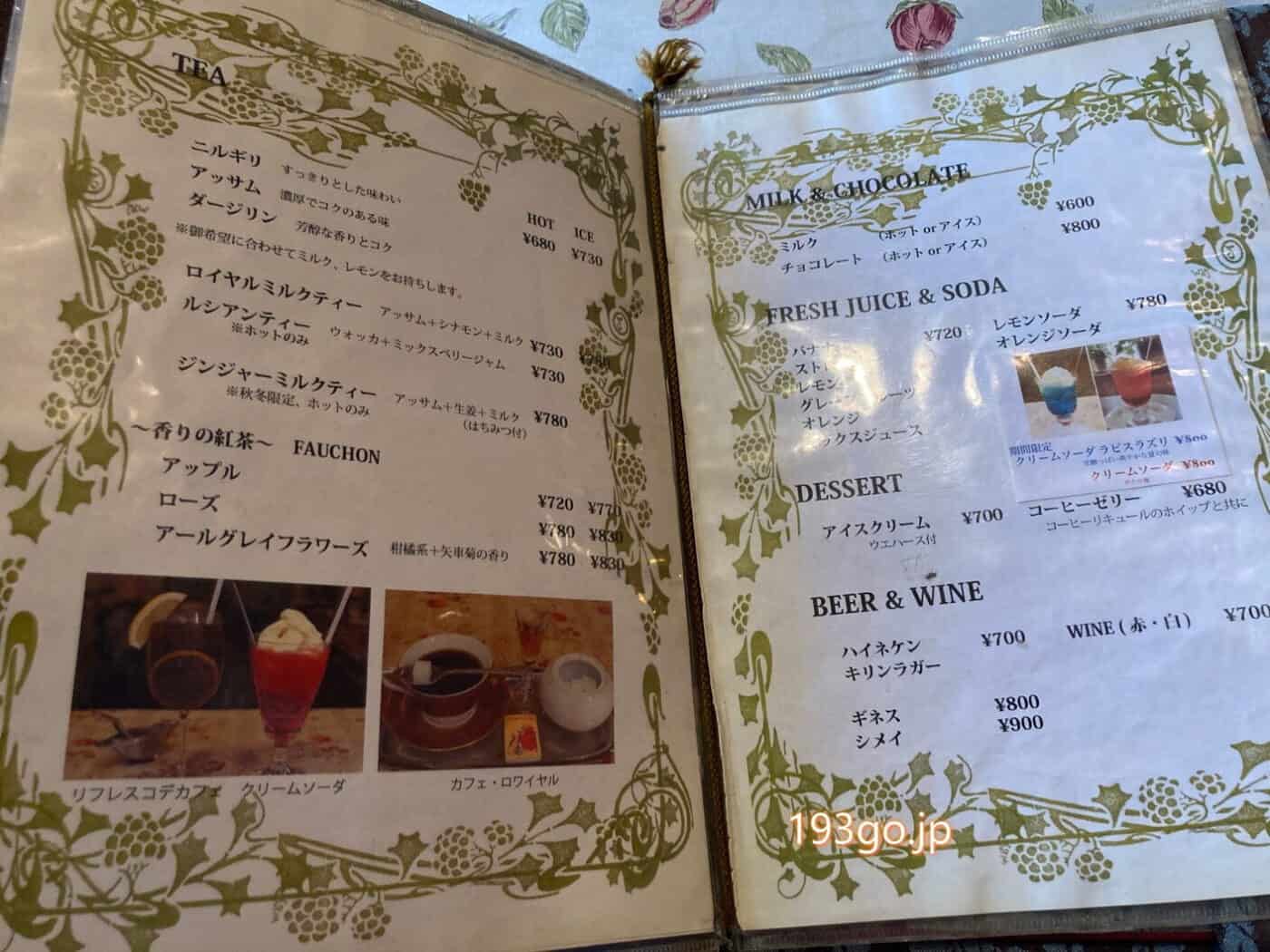 コーヒー、ティーの種類も多い。ケーキセットは50円引きに。