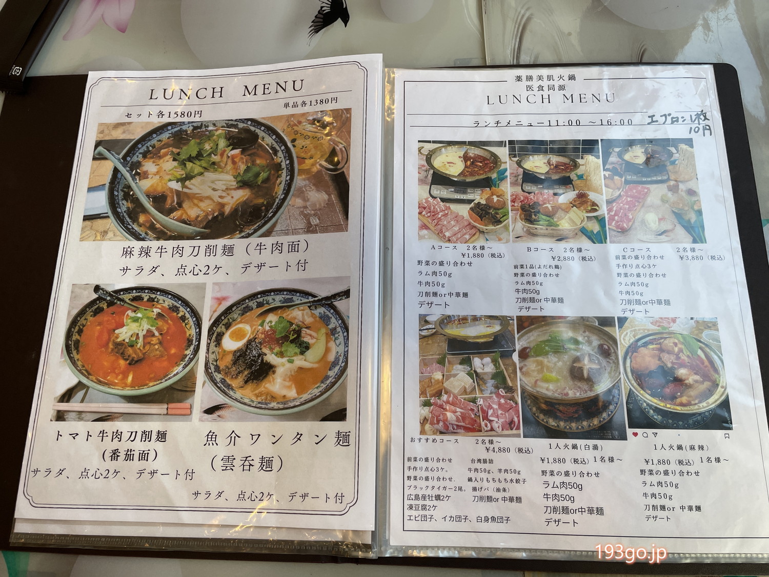 「チャイナダイニング麗」ランチメニュー 火鍋に点心、中華麺…
