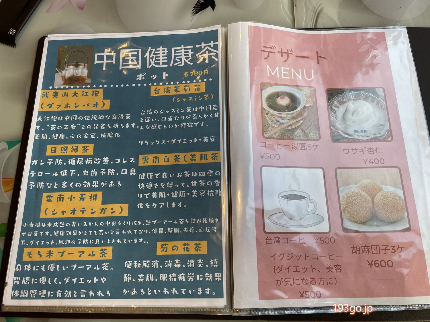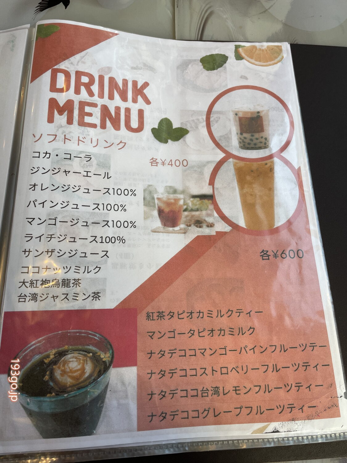 中国茶やタピオカ、フルーツティーなどのドリンクも多種類。