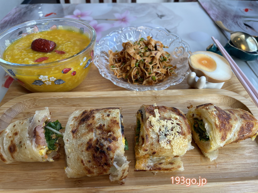 薬膳粥と葱パイにデザート付き!食べ応えあり