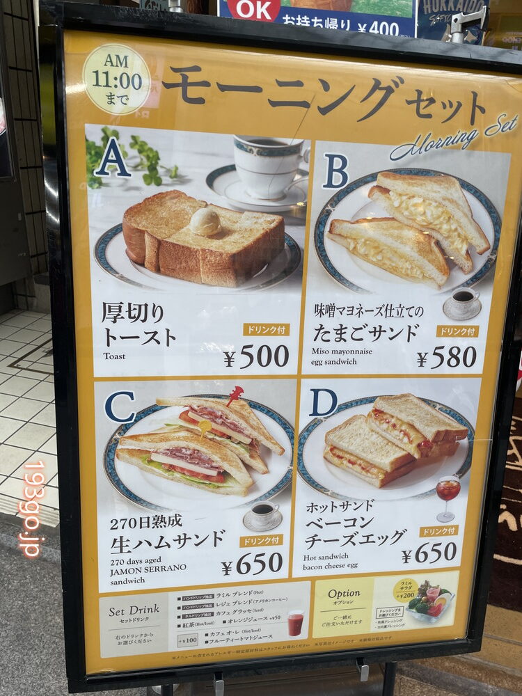 朝9:00~11:00までのモーニングメニュー(ドリンク付き)