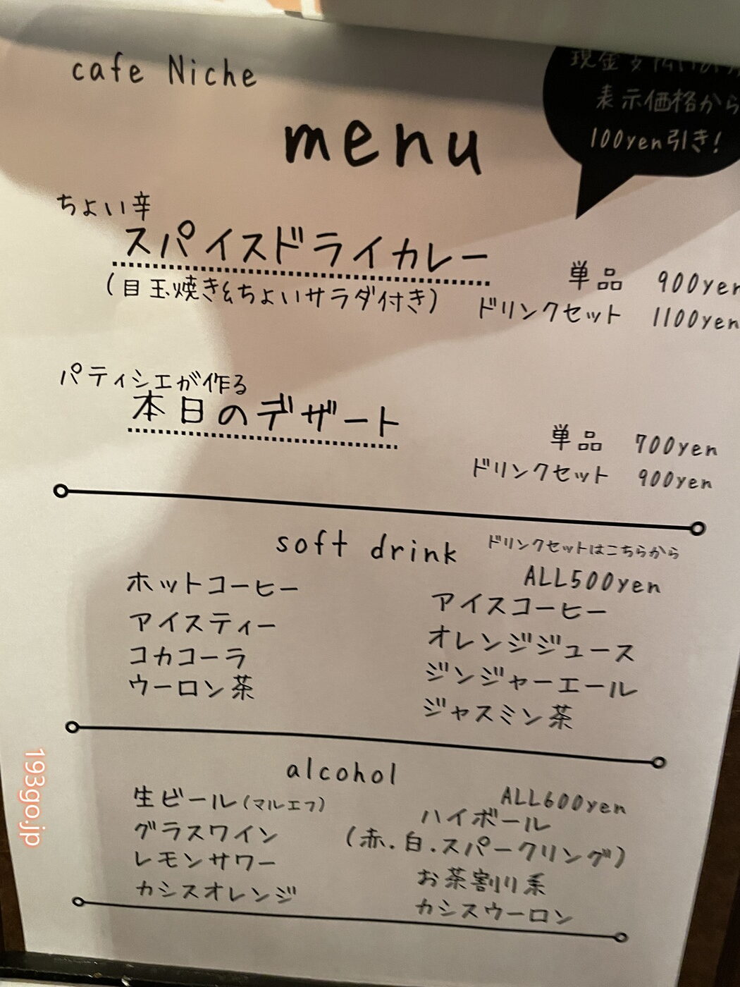 Niche(ニッチ)カフェメニュー(不定期 12時~15時)