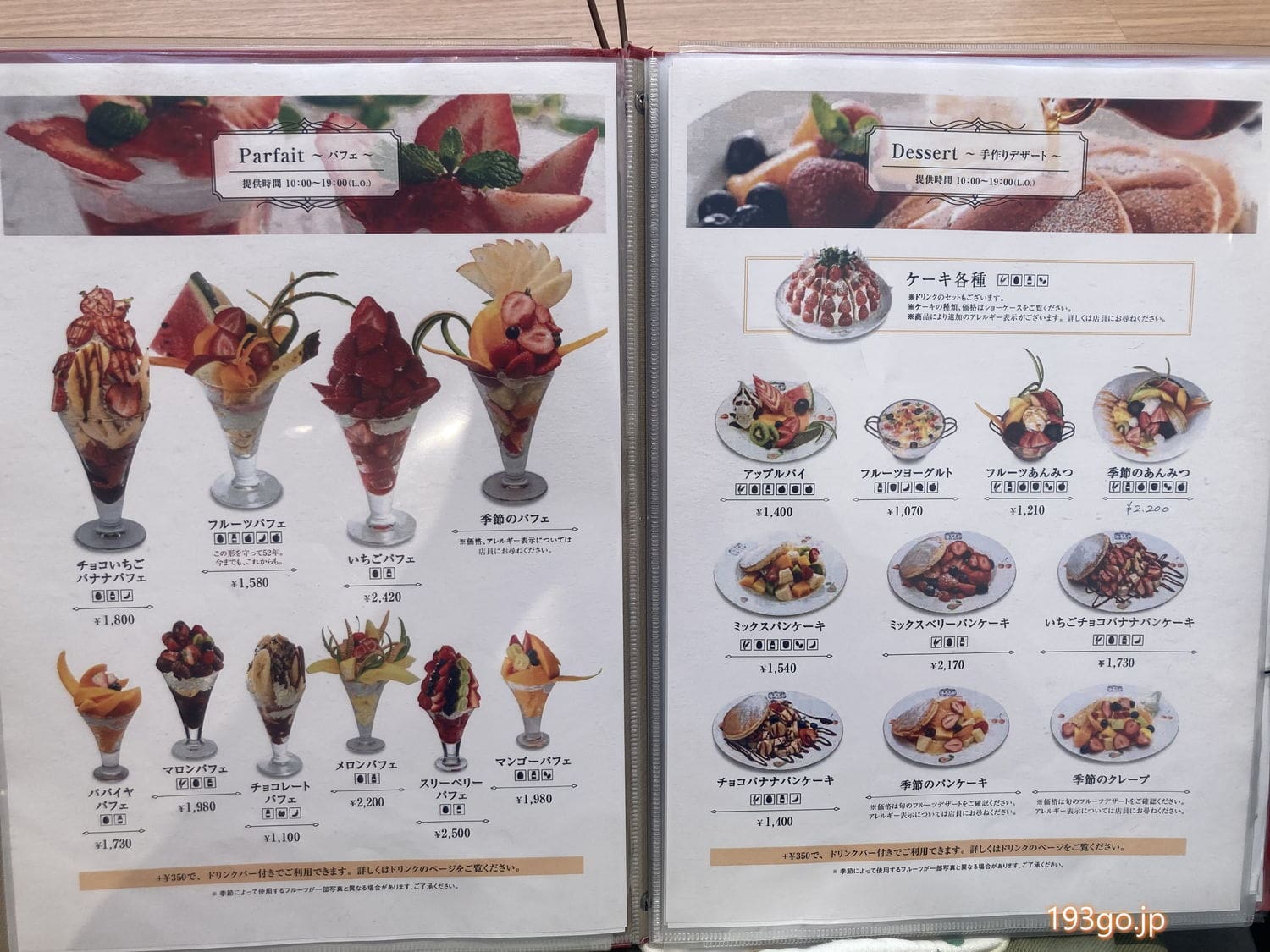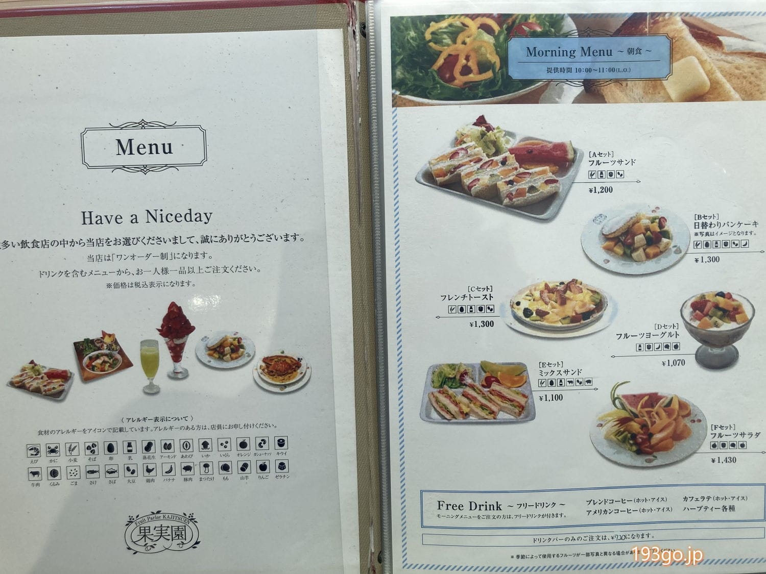 「果実園 リーベル 吉祥寺店」モーニングのメニュー(10:00~11:00)