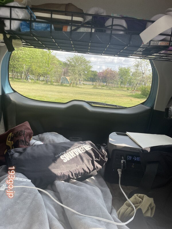 キャンプ場で迎える車中での朝。⇒【「道の駅 国上」でキャンプ】