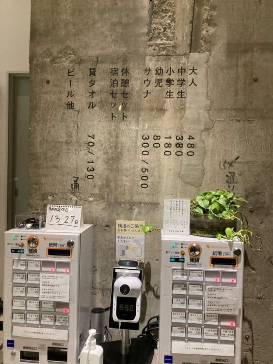 券売機で入浴券を購入!アメニティー、ドライヤーも完備