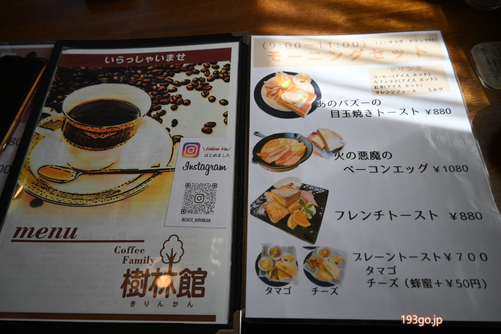 「樹林館(きりんかん)」モーニングのメニュー(9:00~11:00)