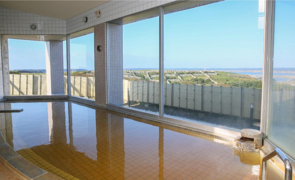 食堂(休憩所)や浴室から海を見渡せ、開放感がある。