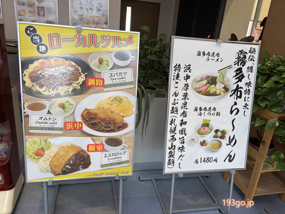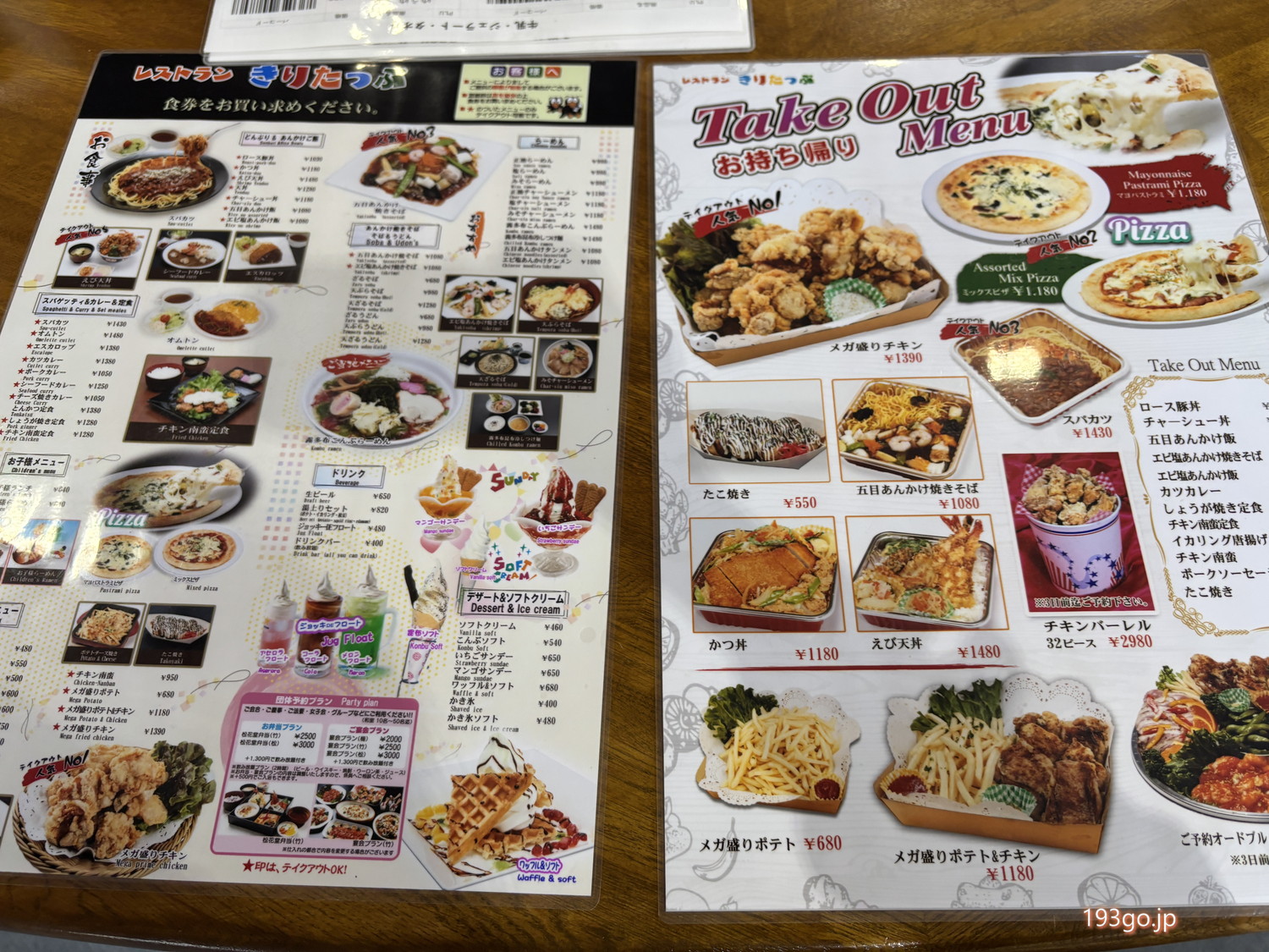 食堂(レストラン「きりたっぷ」)メニューは丼やあんかけご飯、定食、カレー、ラーメン、スイーツ…など。