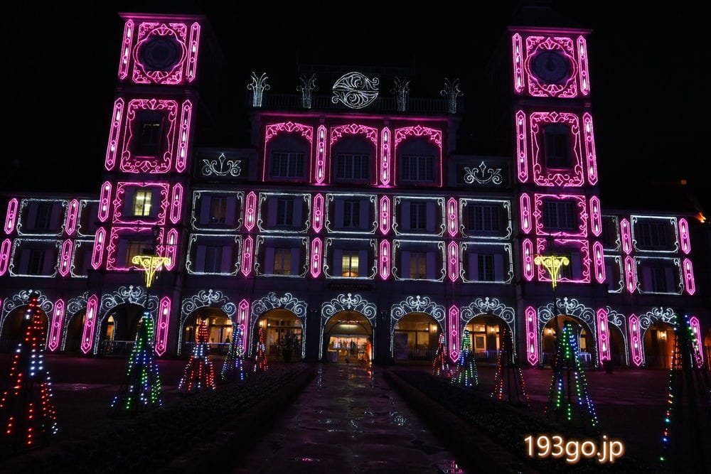 点灯時間は17:30~21:30。点灯する前に入場し、一気にライトアップする様子を鑑賞。