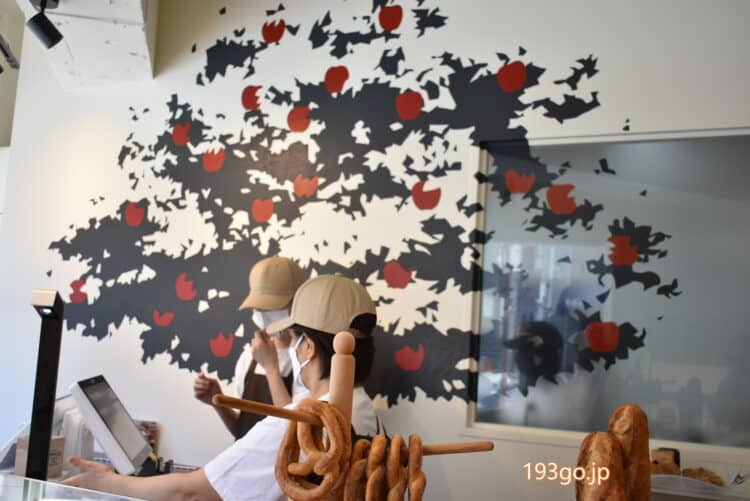 りんご色の真っ赤なおしゃれパン屋さん。