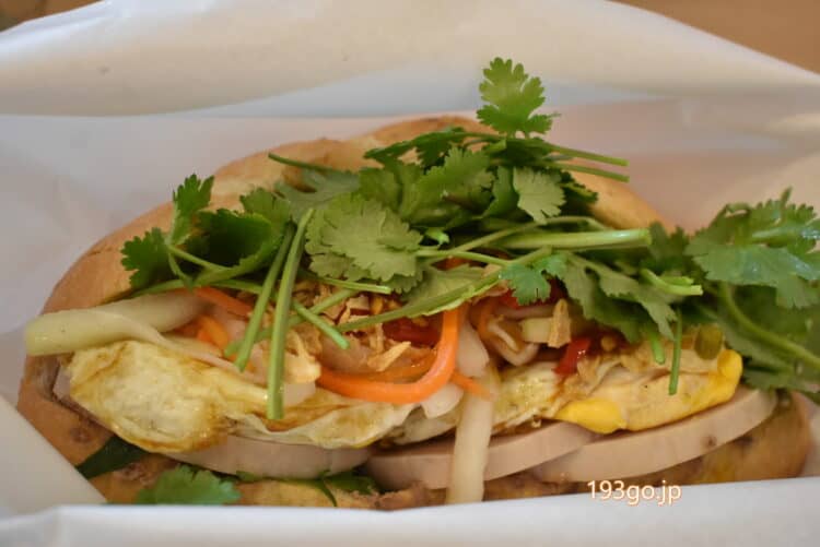 分厚いバインミーに驚き!「目玉焼きとベトナムハム」をガブっ