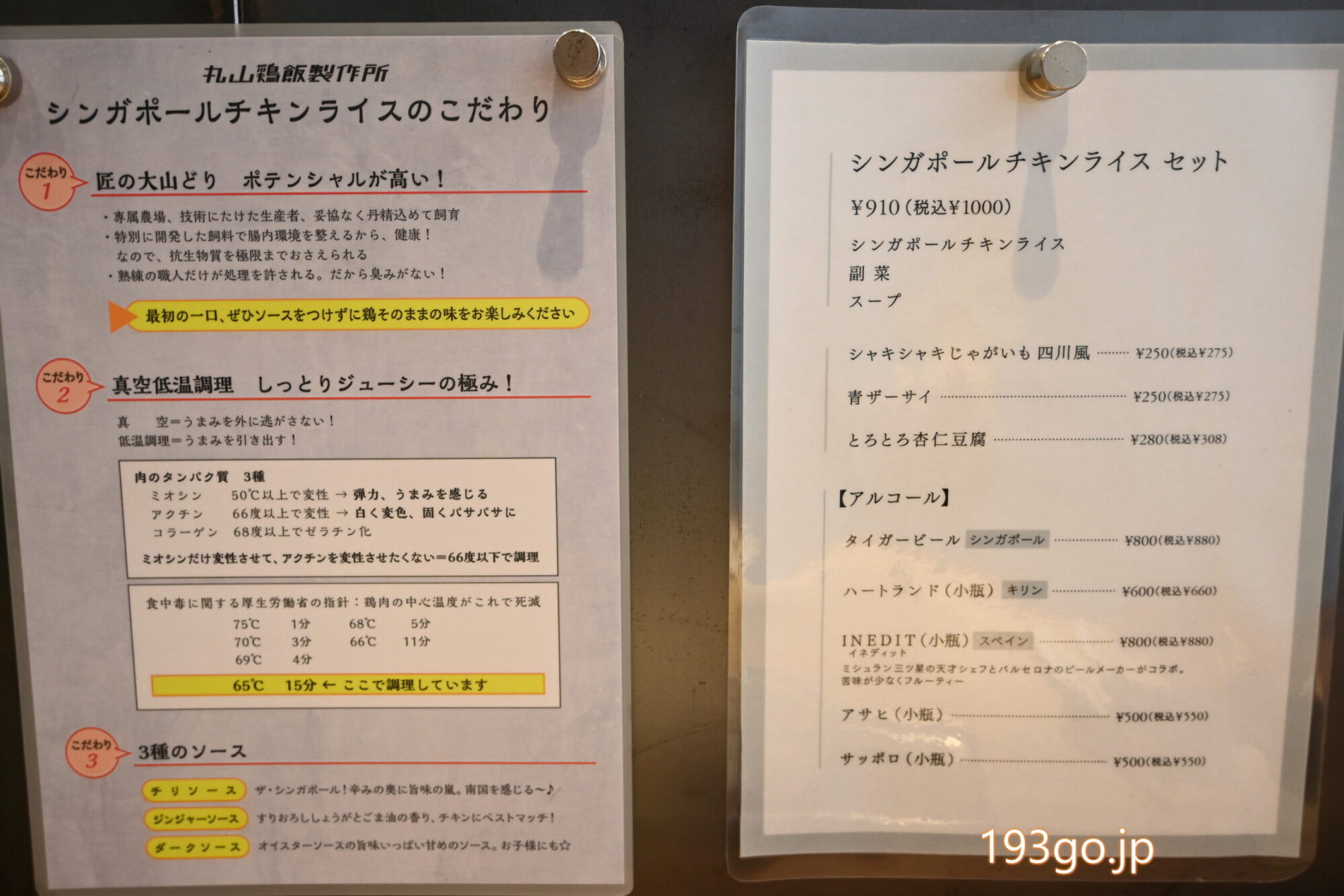 メニュー チキンライスとおつまみ