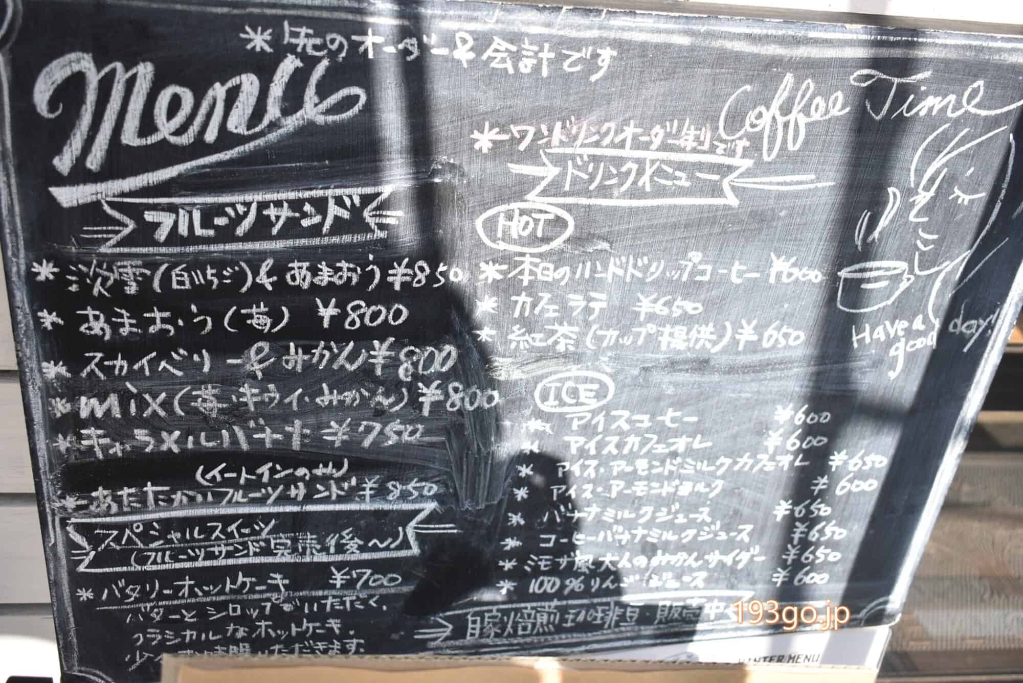 フルーツサンドは、ミックス:800円、キャラメルバナナ:750円、いちご:800円~850円などがあり