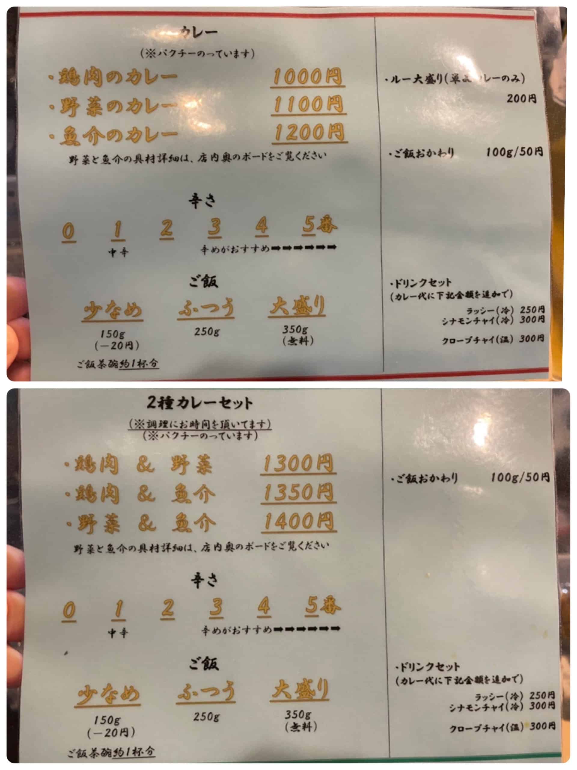 辛さは、0~5まで選べ、ご飯は大盛り無料、少な目は20円引き。