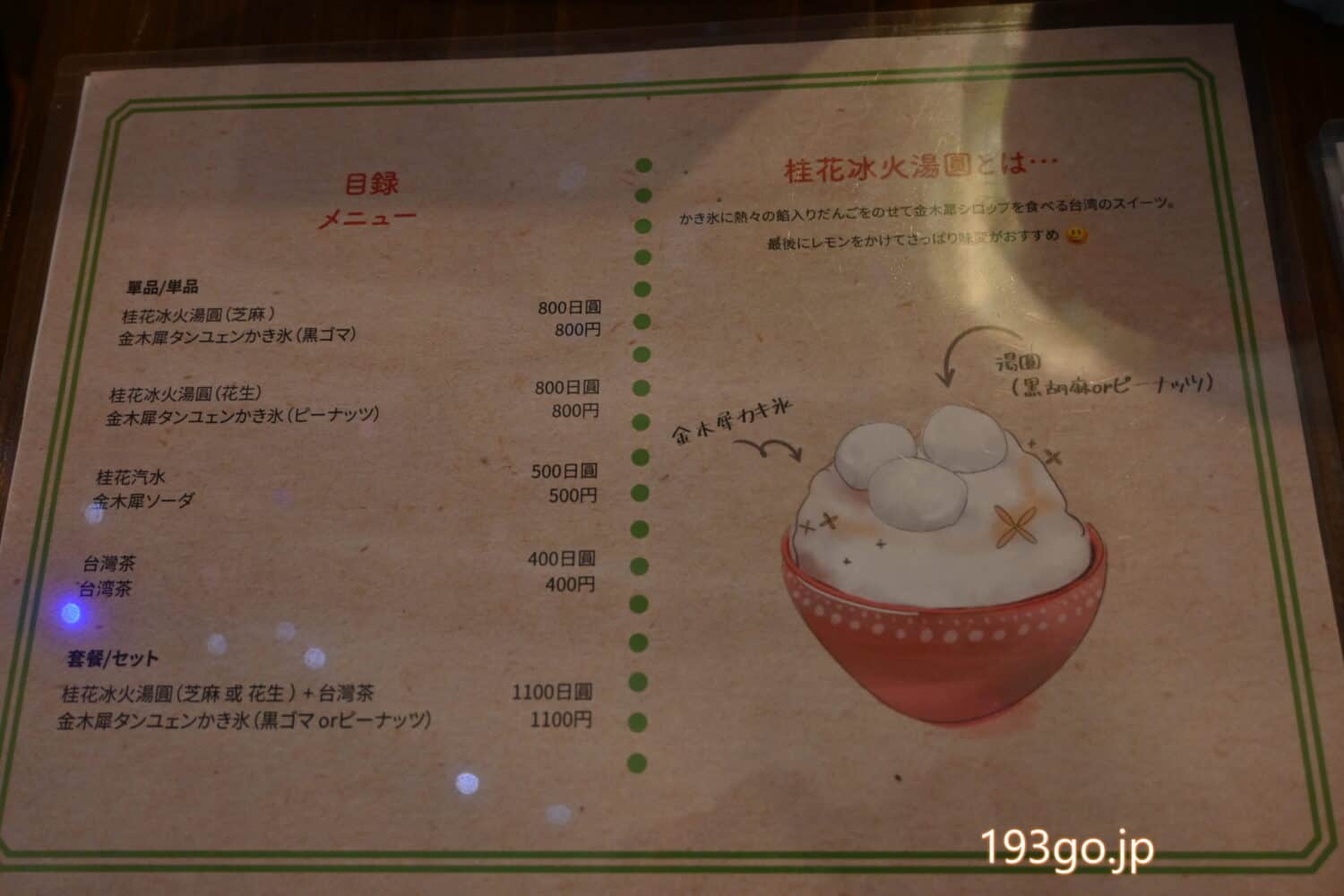 金木犀タンウェンかき氷の黒ごまと、金木犀ソーダを注文。