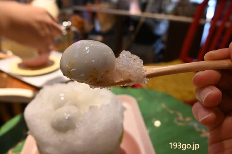 見た目もユニーク。あったかいツルモチ食感とひんやり氷を堪能。