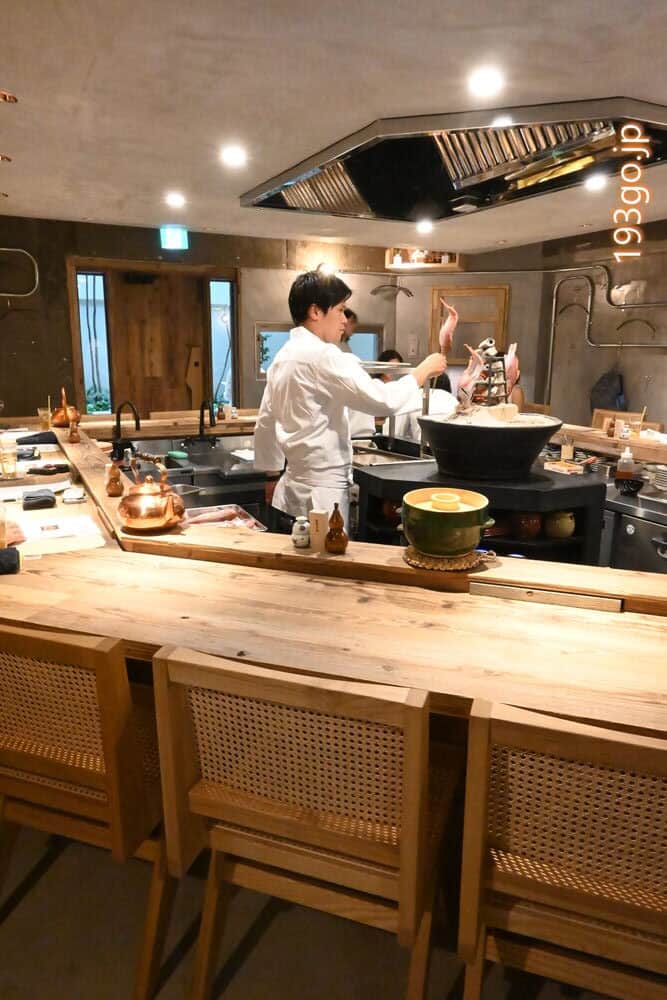 店内は、オープンキッチンを囲んだカウンター席がメイン。