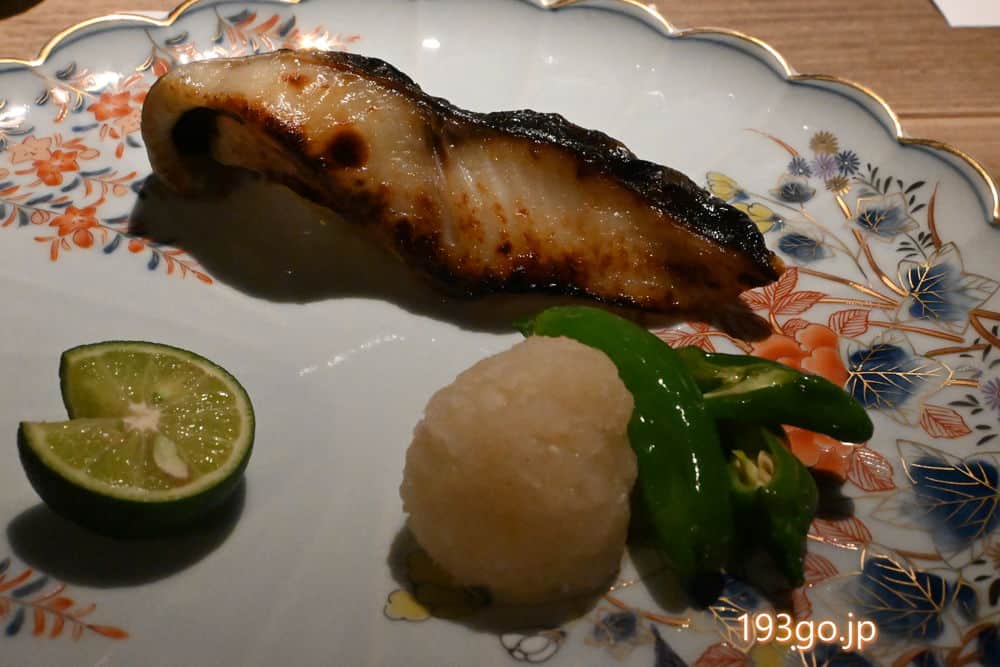 パリっと焼き目の付いたサワラ、自家製ポン酢で。