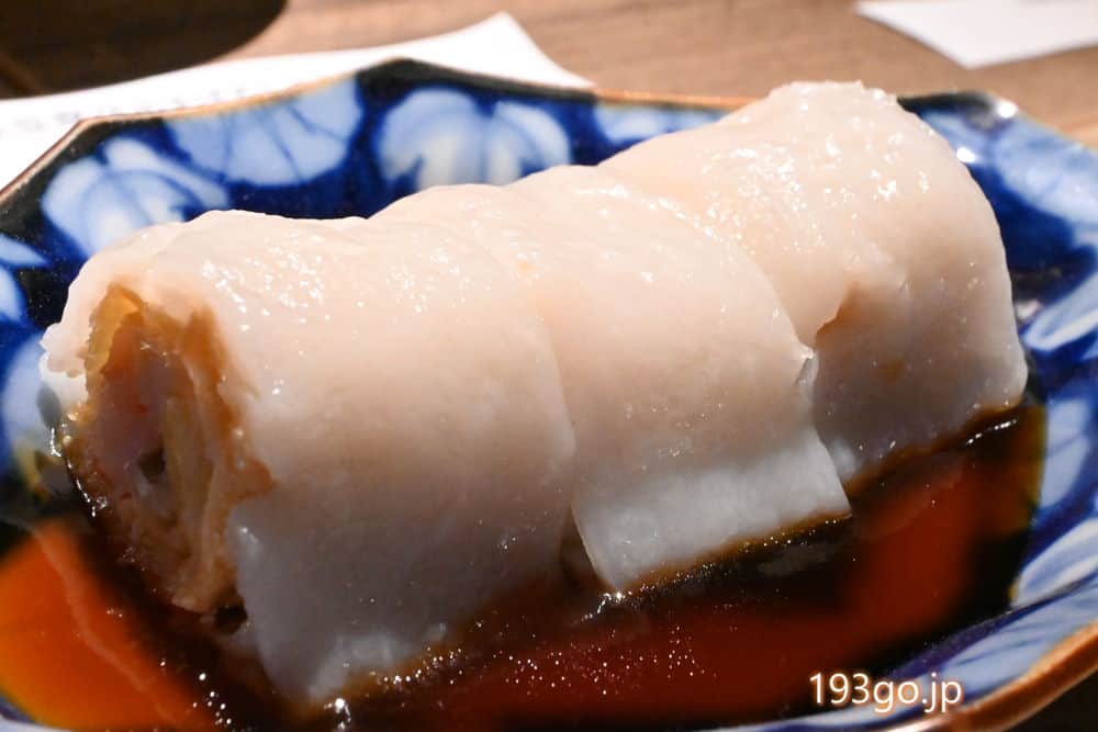 揚げ湯葉と海老の腸粉(チョンファン)。