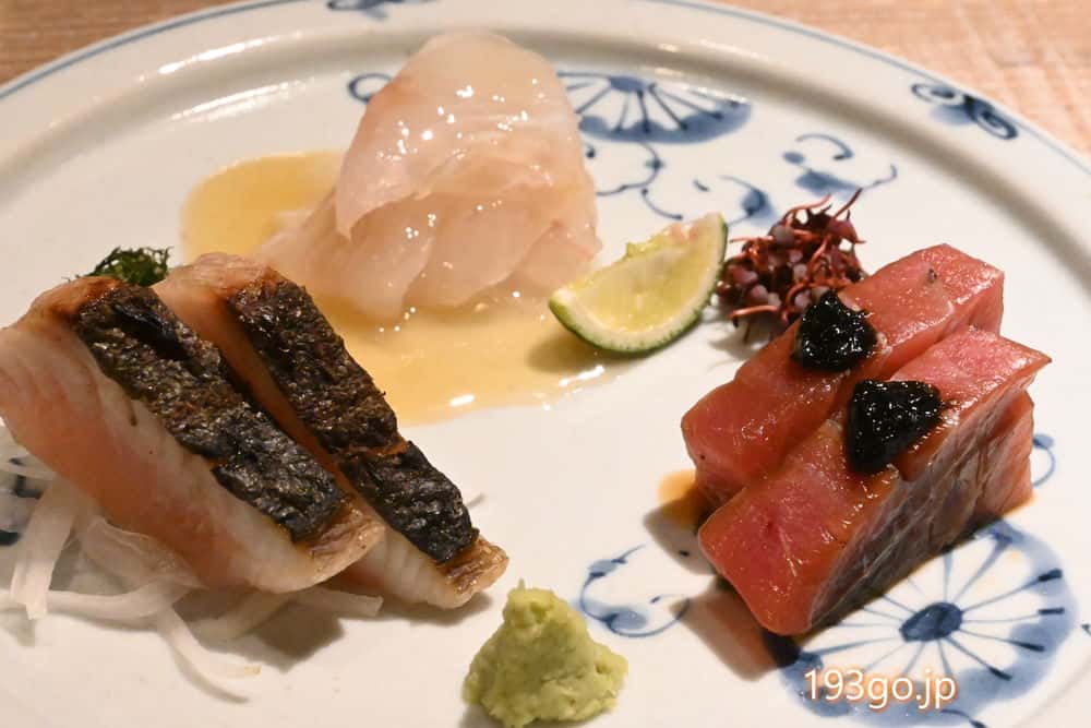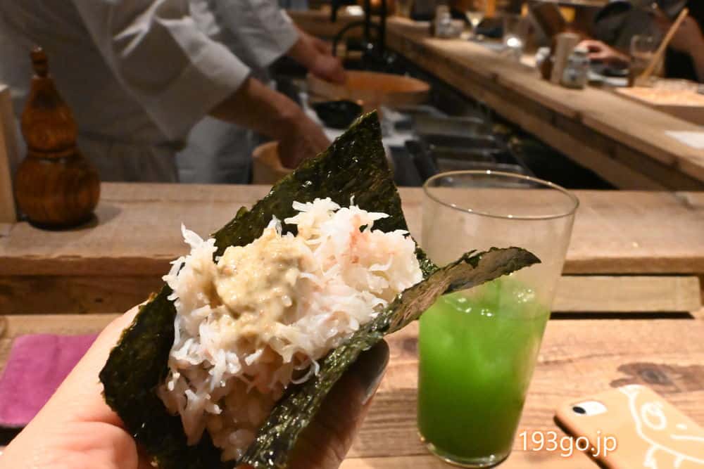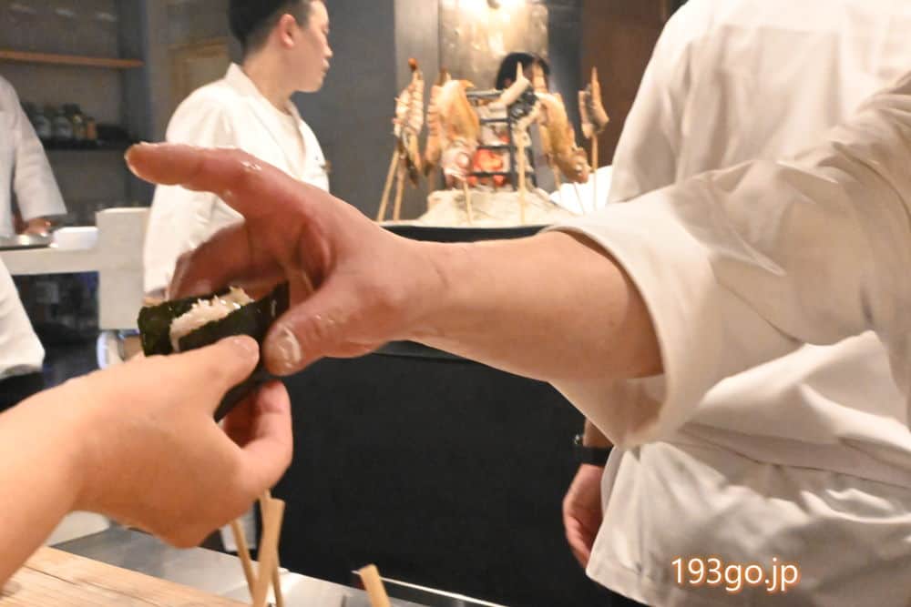 目の前で作られたお寿司がカウンター越しに直接渡される。