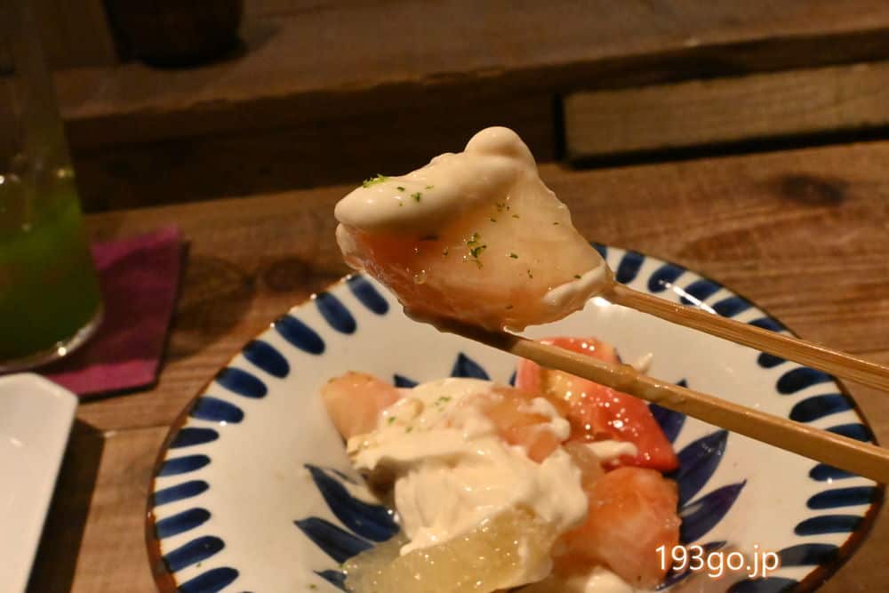 梅肉和えのヒラメはカボスを搾ってサッパリと。