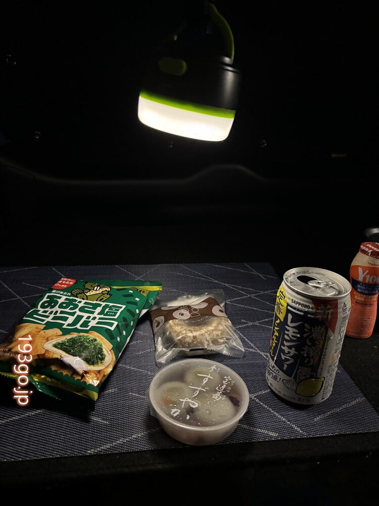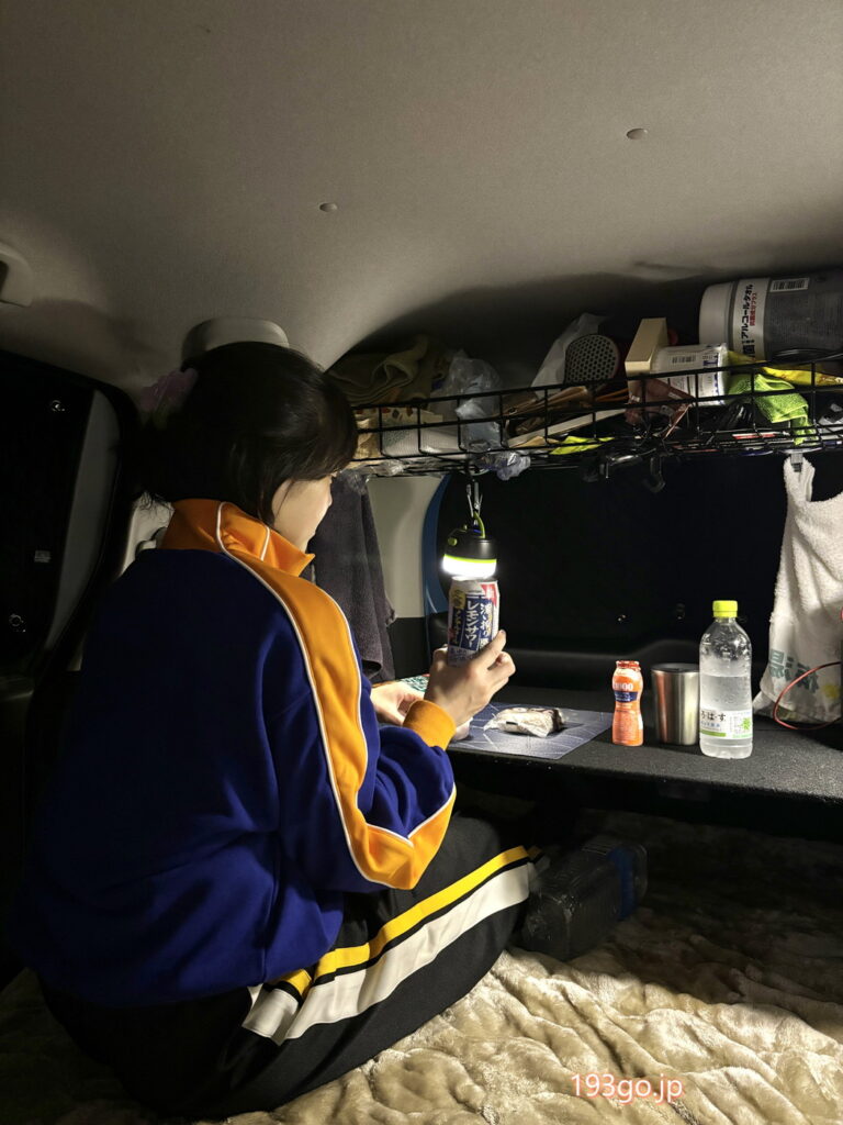 夜着くと、駐車場には全国各地からの車中泊仕様の車が並んでいた。