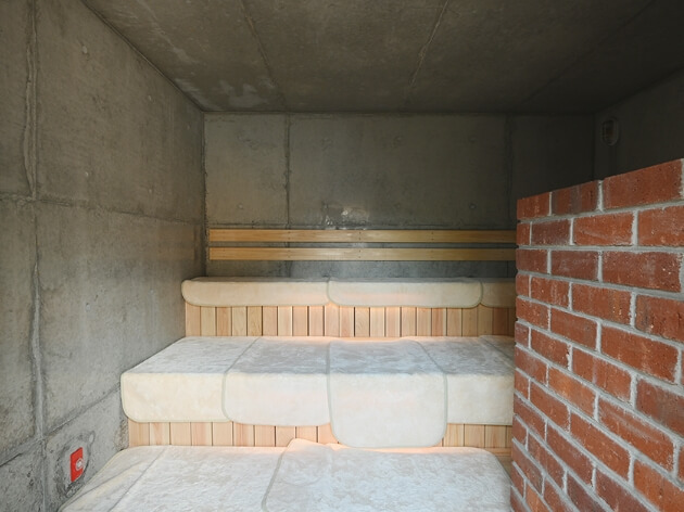 中庭に露天風呂、土管の水風呂、2つのサウナ(やまごやサウナ・あなぐらサウナ)。独立したコテージ(サウナ)の中で薪ストーブの音と揺らぎを見ながら、じんわり温まる。