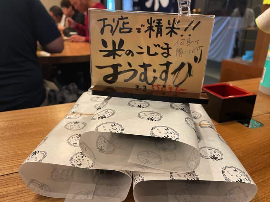 羽釜で炊いたお米で作ったおむすびセット550円がある。