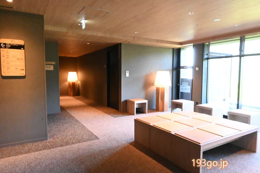 大浴場は最上階6階に。15:00 ~ 24:00、5:00 ~ 10:00に利用可能。