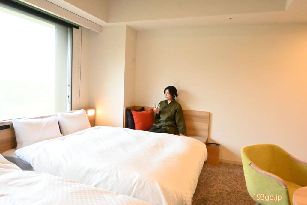 客室へ!緑と木の温もりのリラックスルームにステイ