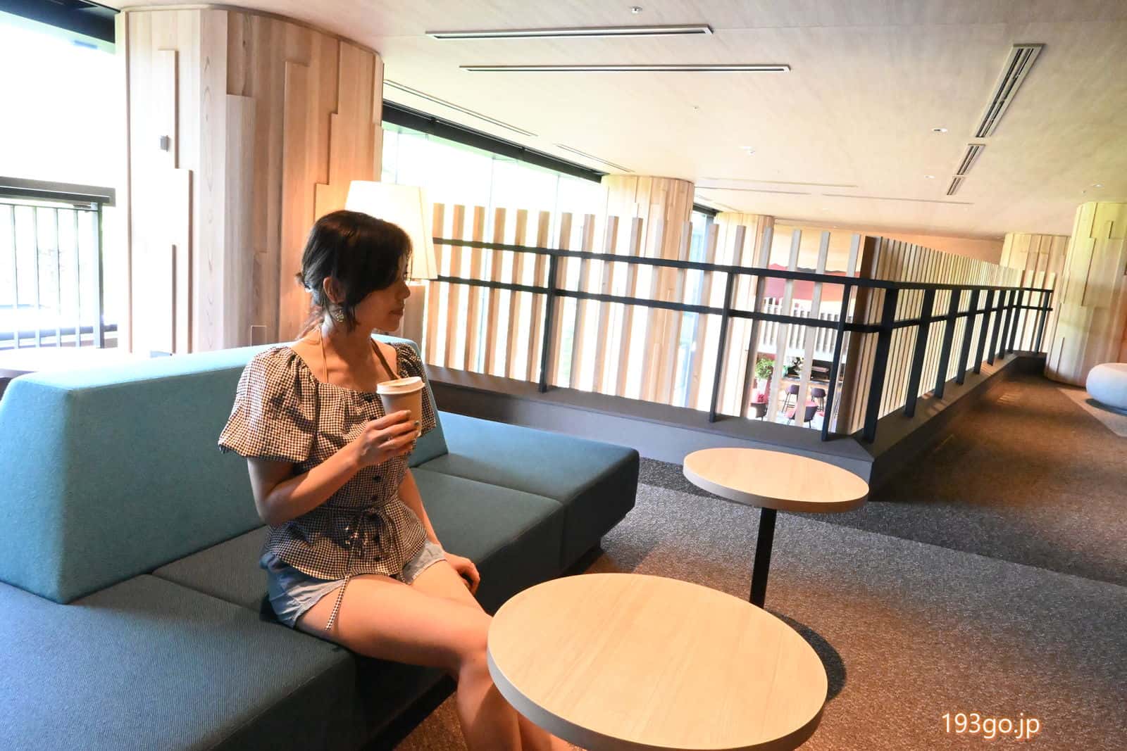 ロビーラウンジでは、ゆったりしたソファーに座って、コーヒーがセルフサービスで楽しめる。