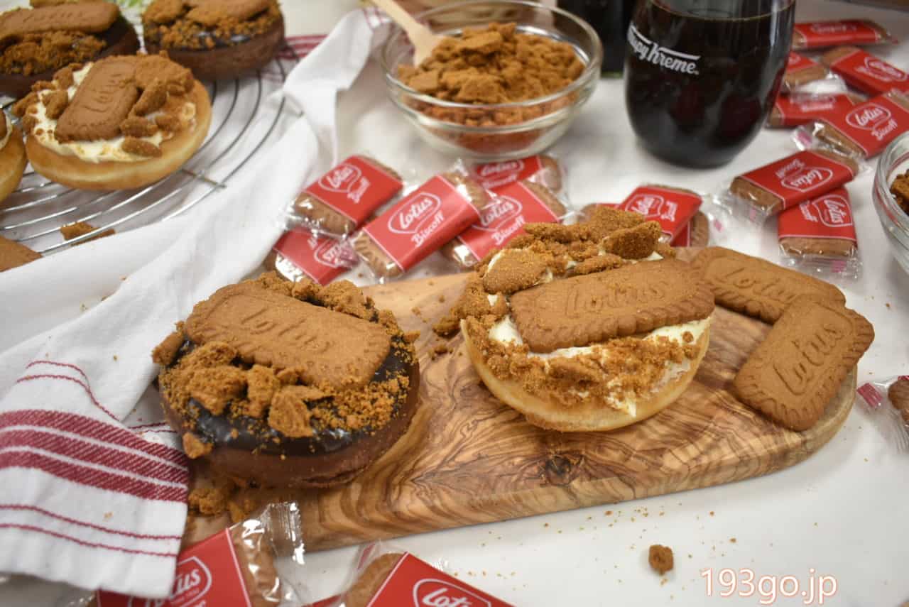 6月10日からの新商品は、なんとあの「ロータス ビスコフ」が丸ごと乗ったドーナツ。