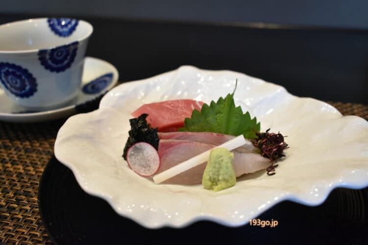 八寸、お椀、造り、焼物、食事、甘味の全6品が順に運ばれて来た。