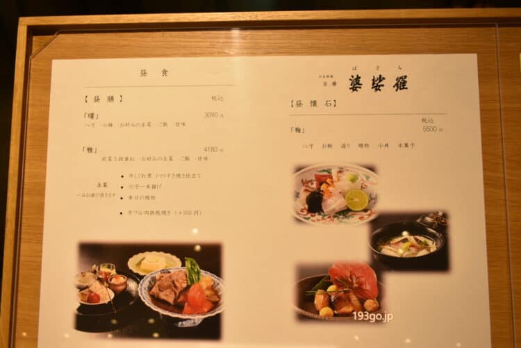 ランチメニューは、税込み3090円からのコースや、豚カツ:2530円~、牛しぐれ丼:1650円~や、穴子一本揚げ天丼:1980円などの丼物もあり、頂いたのは懐石コース「梅」:5500円