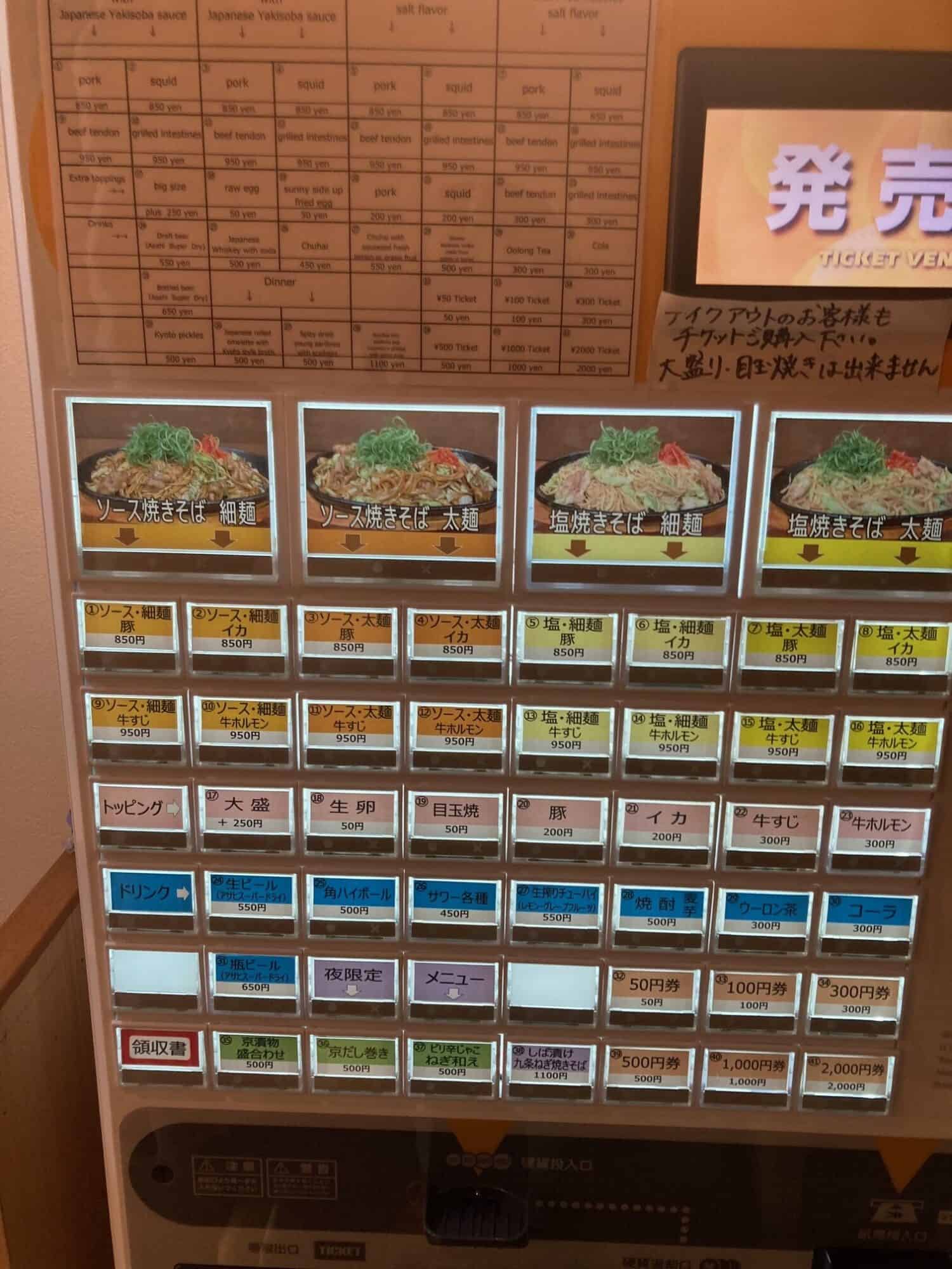 そして、細麺のソース焼きそば・牛すじをチョイス