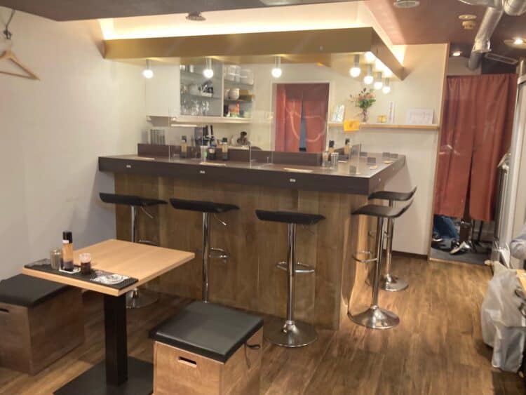 中へ入ると、L字のカウンター席とテーブル席が2つのコンパクトなお店。
