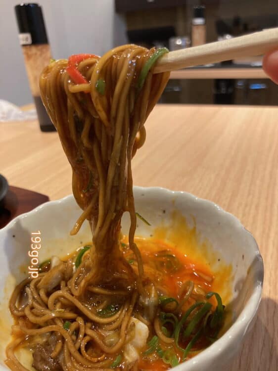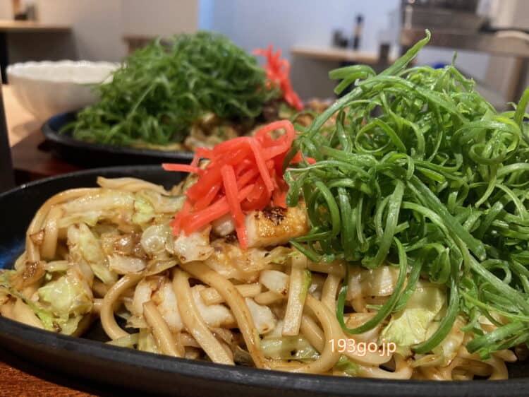塩焼きそばの方は太麺で、細麺に比べてもっと麺はもちもち、
