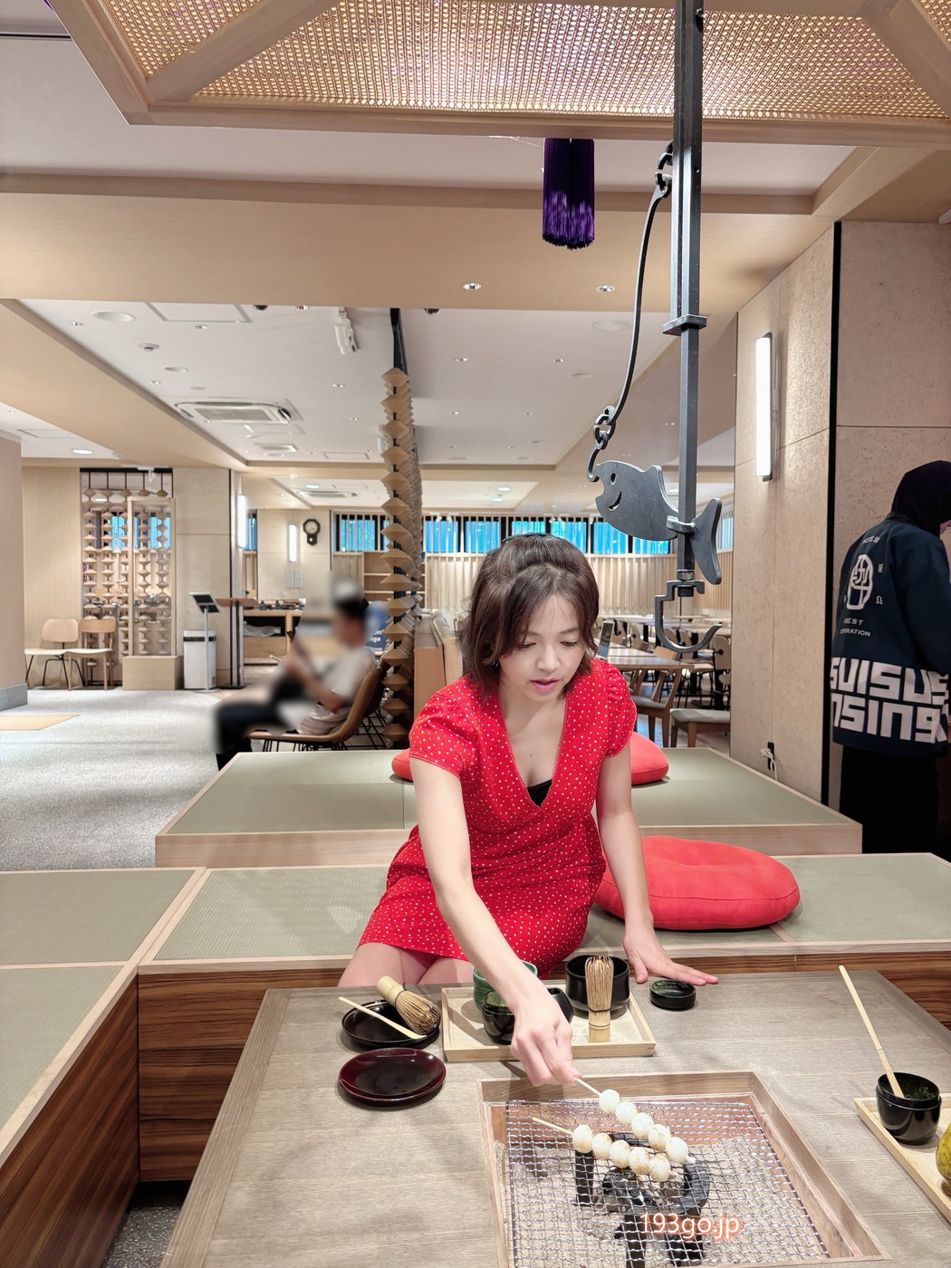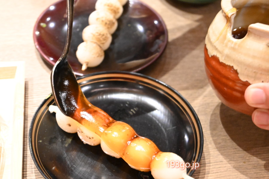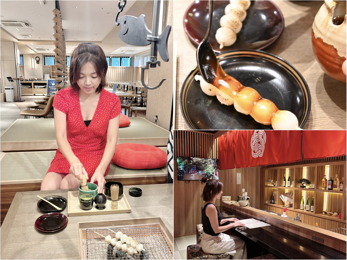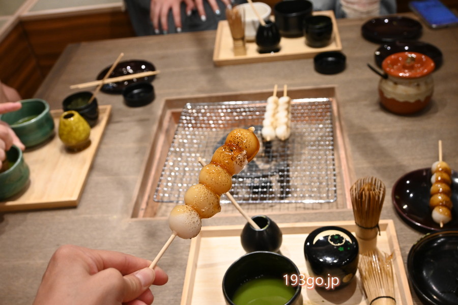 抹茶はお点前体験付き。香ばしく焼いた団子と一緒に、京都らしいひとときを。