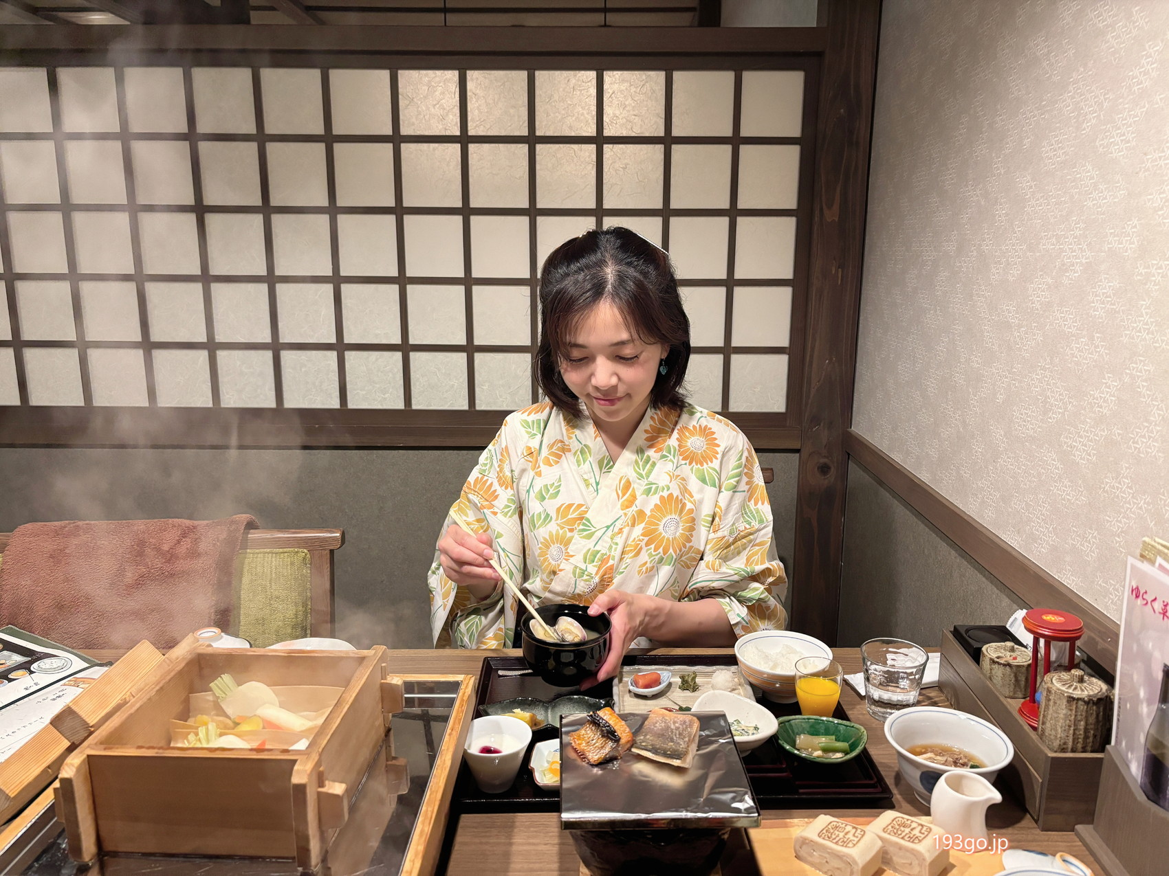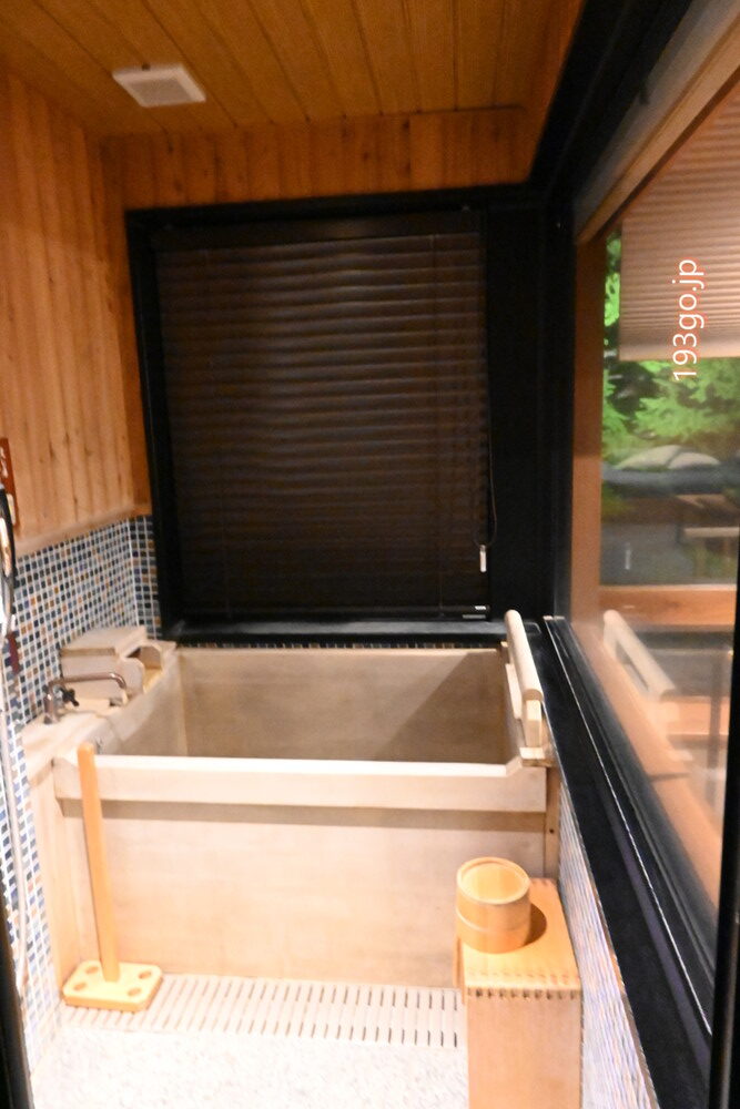 お部屋には天然温泉ビューバス付き。赤い羽織やモスグリーンの館内着も可愛く、まったり過ごせた。