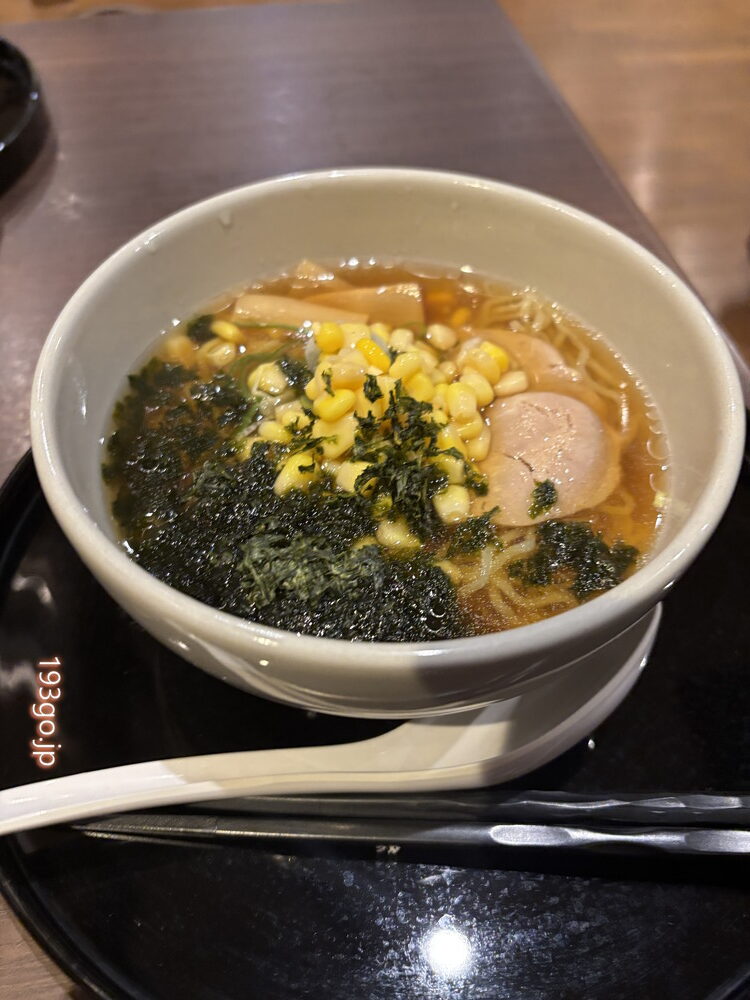 あっさり醤油味の夜鳴きそばにあおさ海苔やコーンをトッピングして、小腹を満たした。※トッピング内容は施設により異なります