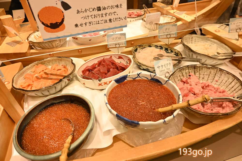 ラビスタの朝食名物の舟盛り!甘エビ、イカ、サーモン、イクラ、タイ、マグロ、ネギトロ。豪華~!