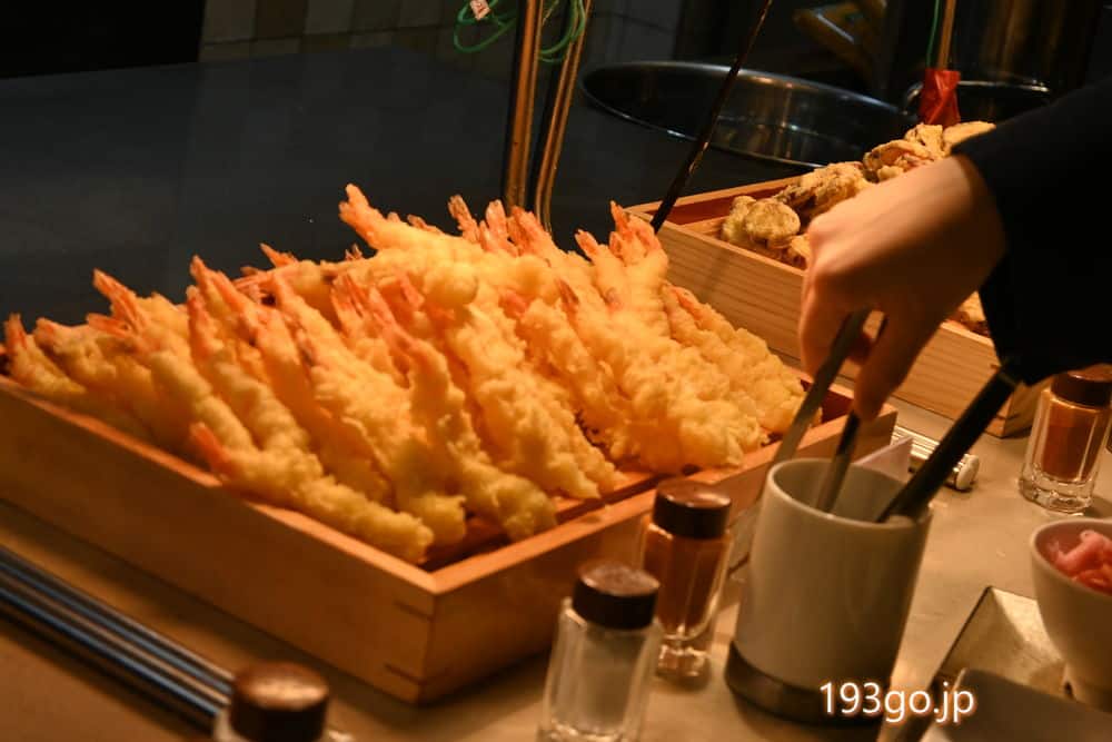 オムレツ、パン、天ぷら、焼き魚、茶碗蒸し…作り立てがどんどん追加される