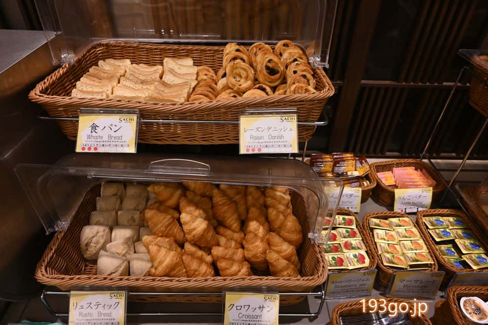 パンはクロワッサン、デニッシュ、食パンなどミニサイズが4種。オーブンでリベイクして、あんバターやジャムなどお好みで。