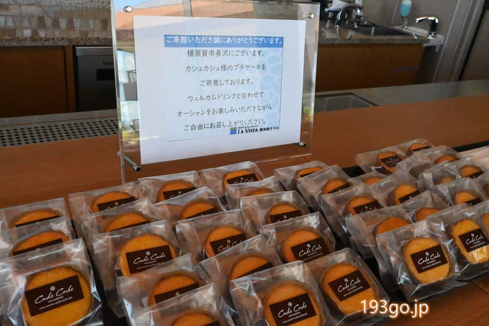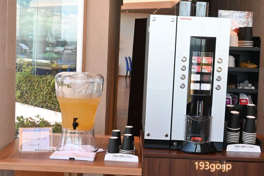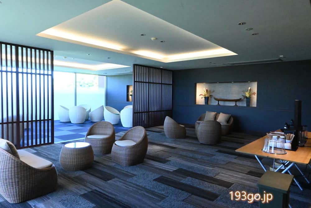 絶景オーシャンビューのラウンジでウェルカムドリンク