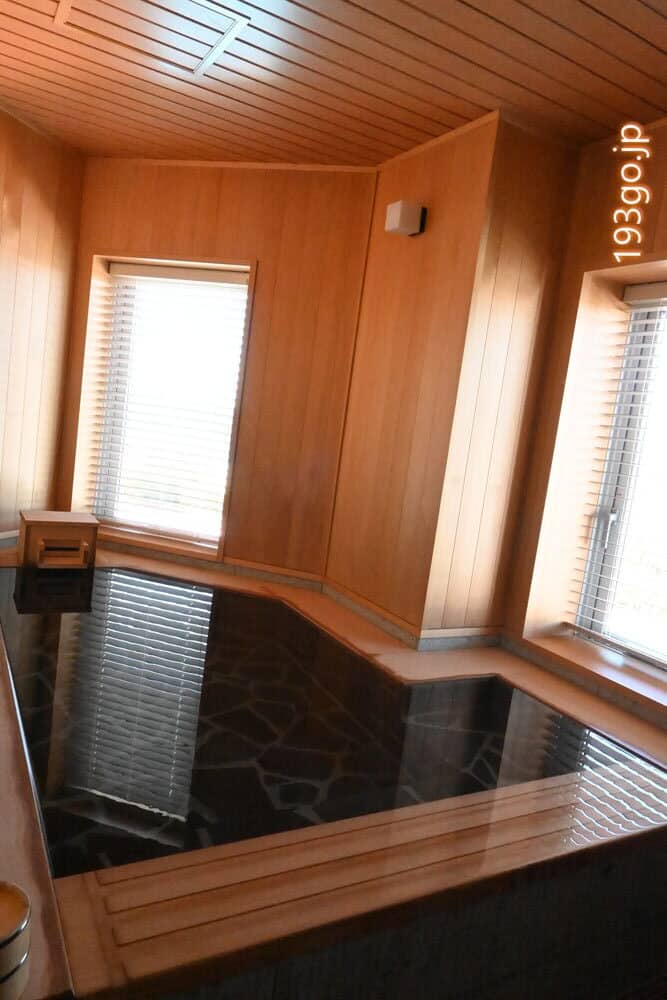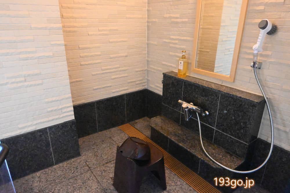 新設された無料天然温泉貸切風呂へ。24時間入浴可能。