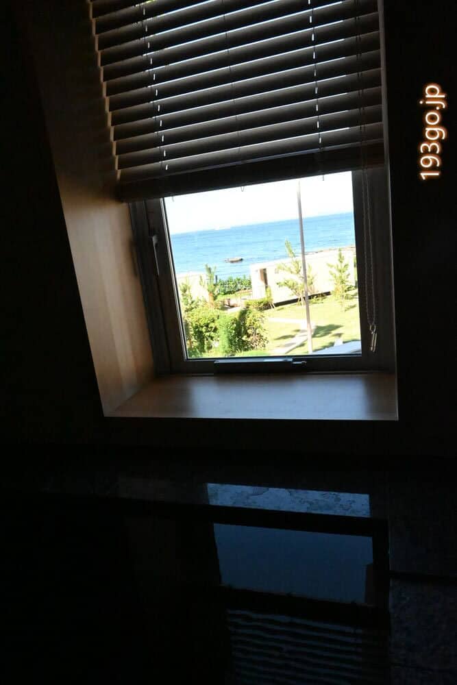 窓ガラスいっぱいに青空と青い海!