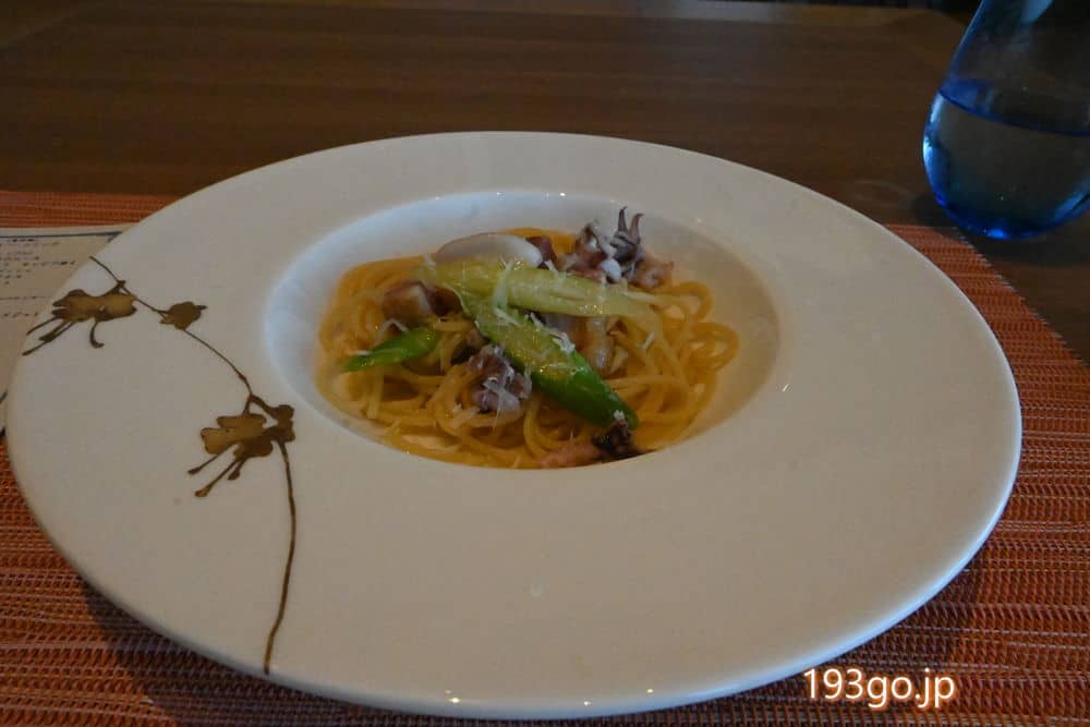 食前酒の桃のスパークリングから始まり、季節の野菜のオードブル、パスタ、スープ、魚料理、肉料理、デザート、食後のドリンクに、パンも付いた満足感たっぷりのフルコース。