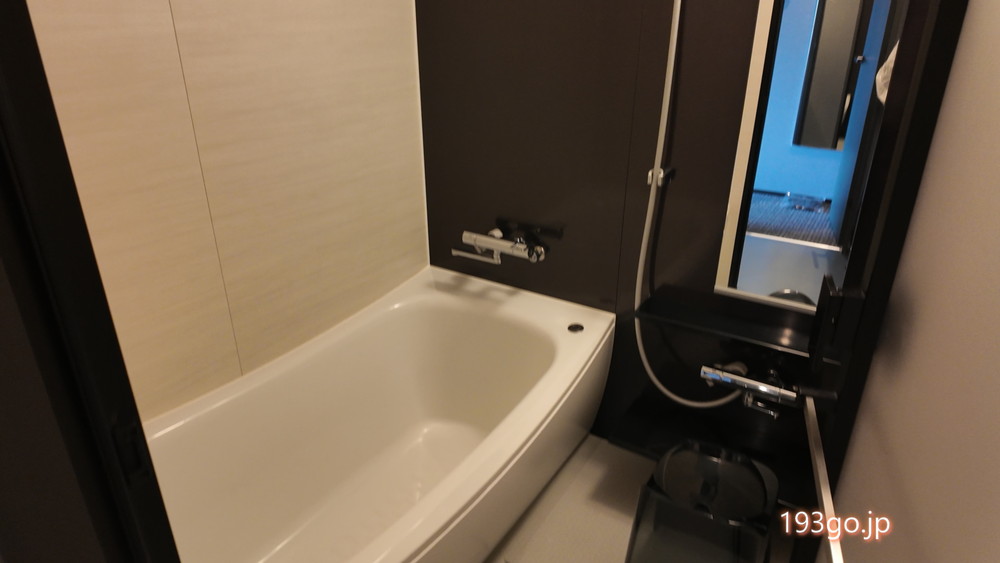 バスタブ付きバスルームと洗面台、トイレはそれぞれ独立し、ベッドルームと引き戸で仕切られる。