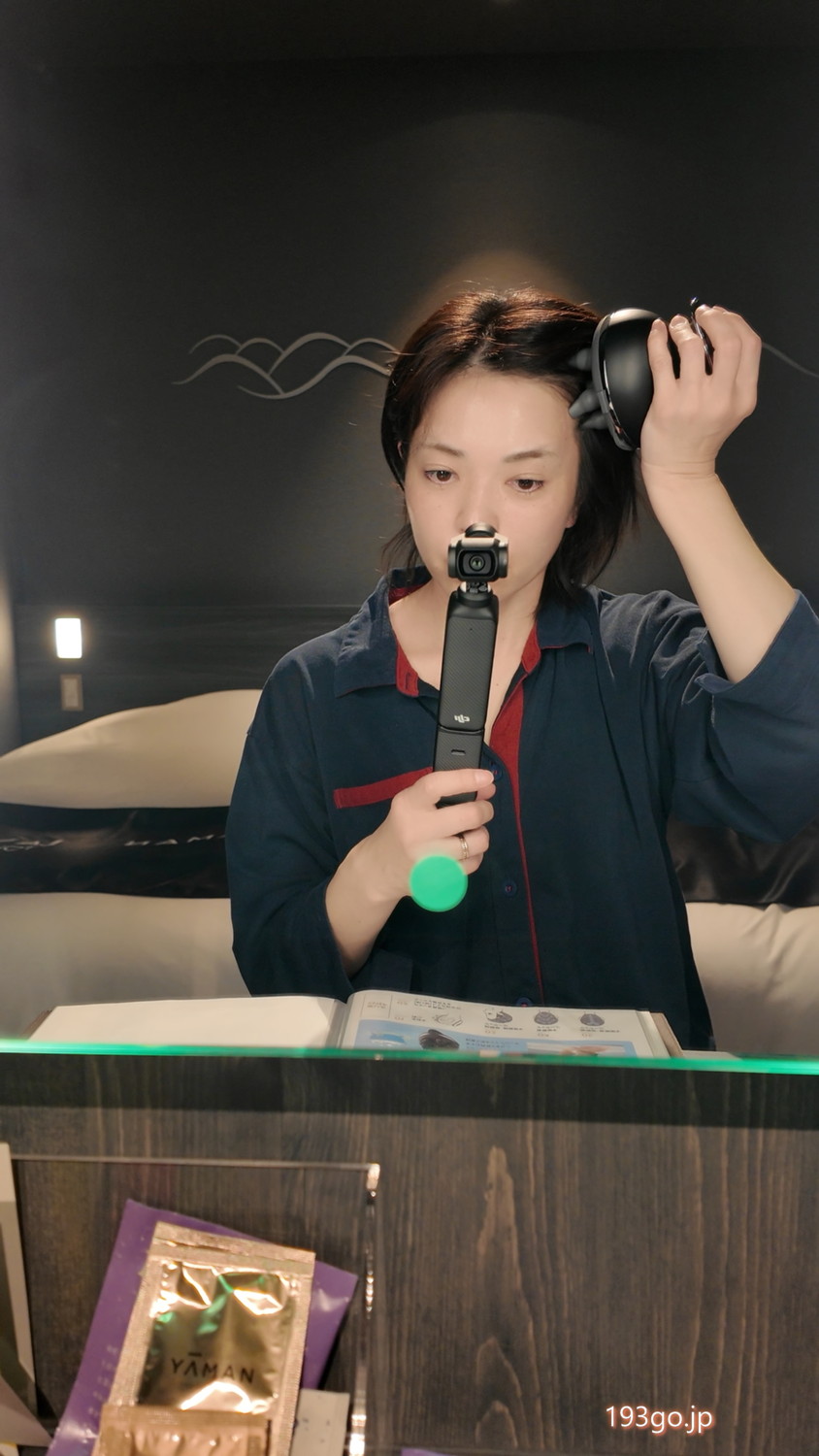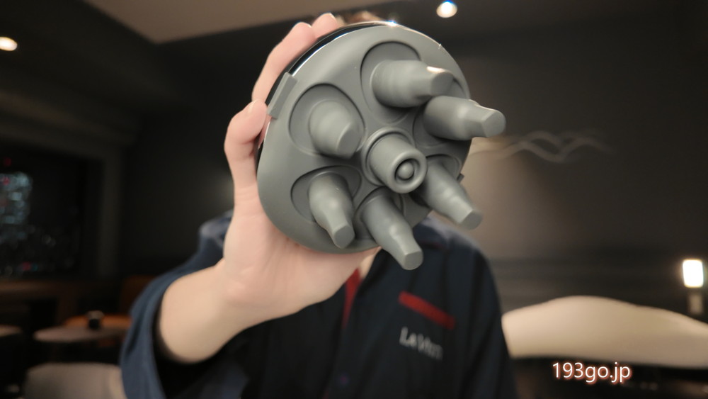 リフトドライヤーで髪を乾かし、クシを通したら、ヘッドを変えてヘッドスパ。